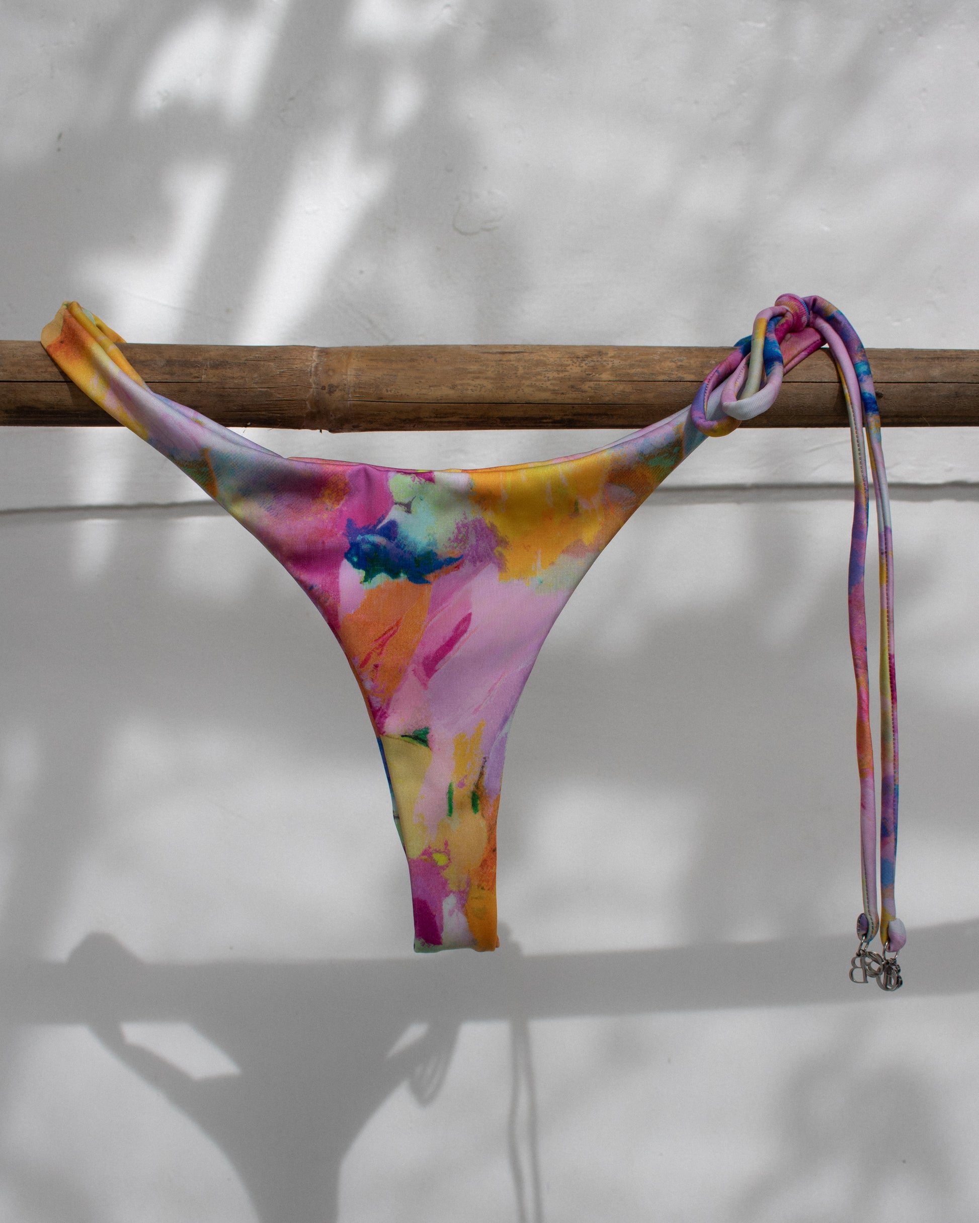 The Sakti Bottom — Signature Print is a high-cut, cheeky style designed for minimal tan lines. Featuring a single side tie finished with removable stainless steel charms, it offers an adjustable fit with a sleek, sculpting silhouette.